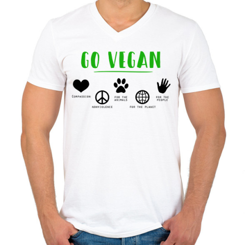 1 kép PRINTFASHION Go vegan - Férfi V-nyakú póló - Fehér