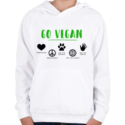 1 kép PRINTFASHION Go vegan - Gyerek kapucnis pulóver - Fehér