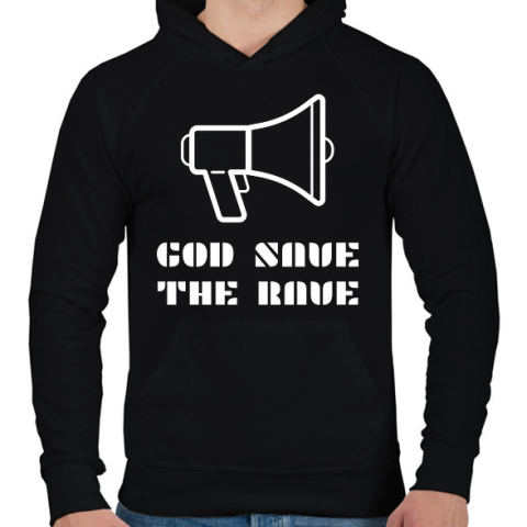 1 kép PRINTFASHION GOD SAVE THE RAVE - Férfi kapucnis pulóver - Fekete