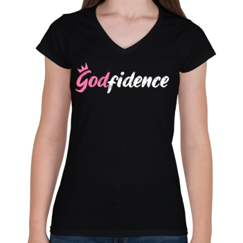 1 kép PRINTFASHION Godfidence - Női V-nyakú póló - Fekete
