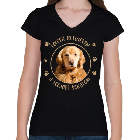 1 kép PRINTFASHION Golden retriever - Legjobb barátom - Női V-nyakú póló - Fekete