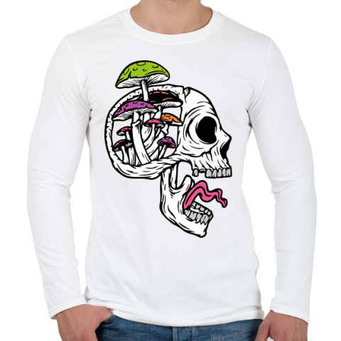 1 kép PRINTFASHION Gombás koponya - Férfi hosszú ujjú póló - Fehér