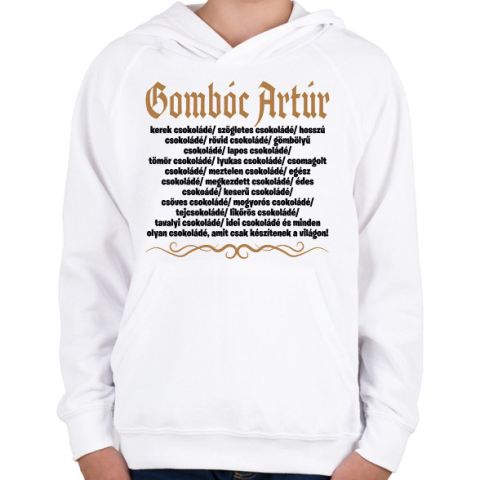 1 kép PRINTFASHION Gombóc Artúr és a világ összes csokoládéja - Gyerek kapucnis pulóver - Fehér