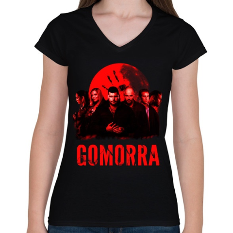 1 kép PRINTFASHION gomorra-red - Női V-nyakú póló - Fekete