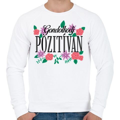 1 kép PRINTFASHION Gondolkodj pozitívan - Férfi pulóver - Fehér
