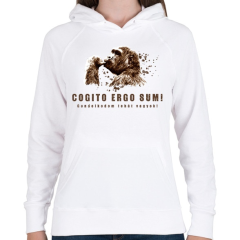 1 kép PRINTFASHION Gondolkodom tehát vagyok - Női kapucnis pulóver - Fehér