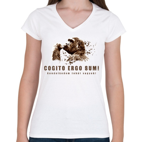 1 kép PRINTFASHION Gondolkodom tehát vagyok - Női V-nyakú póló - Fehér