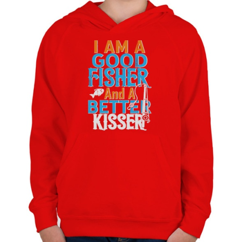 1 kép PRINTFASHION Good fisher - Gyerek kapucnis pulóver - Piros