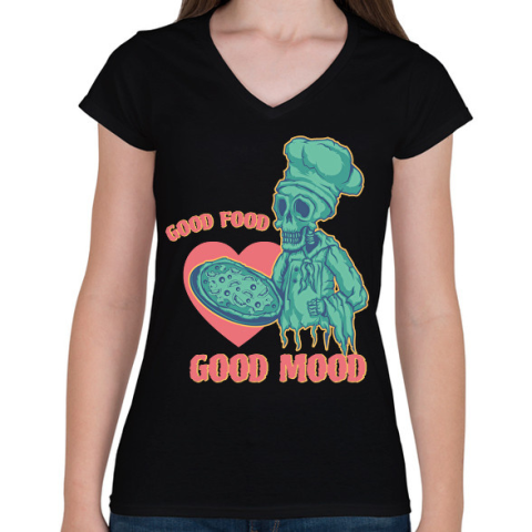 1 kép PRINTFASHION Good food, good mood - Női V-nyakú póló - Fekete