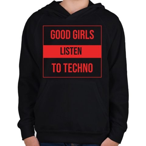 1 kép PRINTFASHION Good girls lsiten techno - Gyerek kapucnis pulóver - Fekete