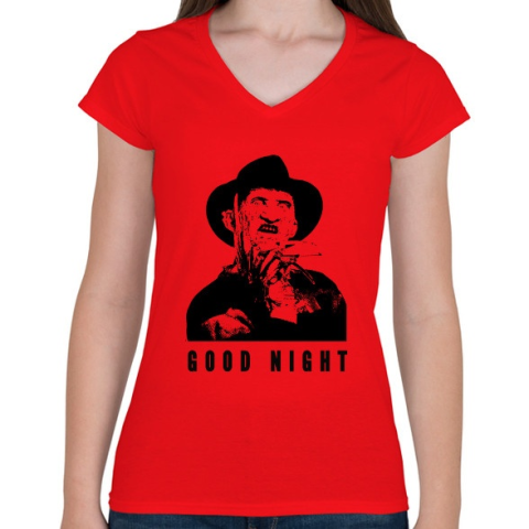 1 kép PRINTFASHION GOOD NIGHT - Női V-nyakú póló - Piros