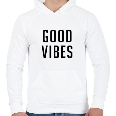 1 kép PRINTFASHION Good Vibes - Férfi kapucnis pulóver - Fehér