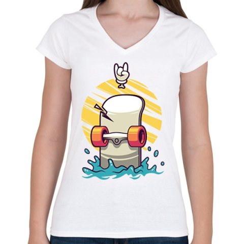 1 kép PRINTFASHION Gördeszka - Női V-nyakú póló - Fehér