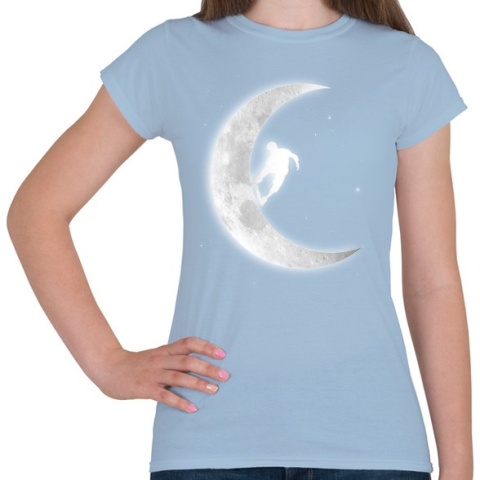 1 kép PRINTFASHION Gördeszkás a holdon - Női póló - Világoskék