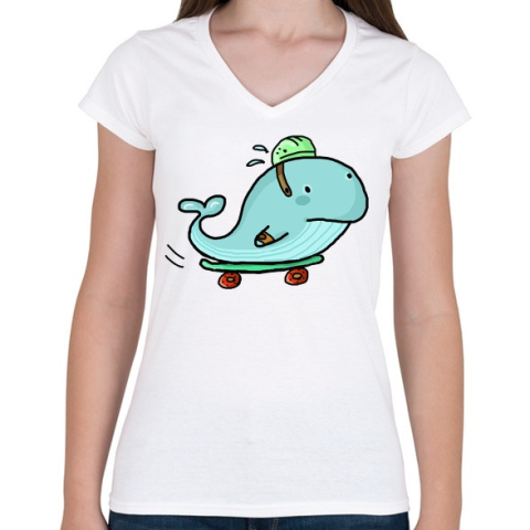 1 kép PRINTFASHION Gördeszkás bálna - Női V-nyakú póló - Fehér