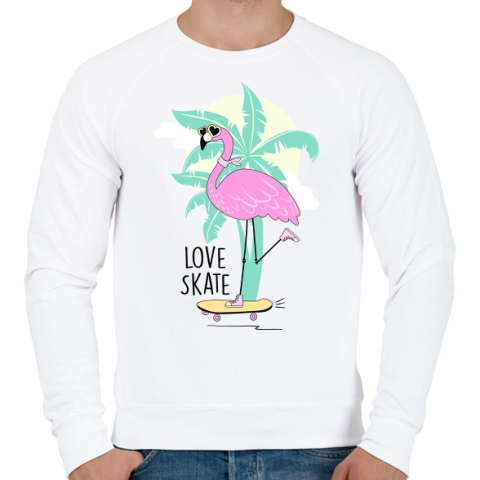 1 kép PRINTFASHION Gördeszkás flamingó - Férfi pulóver - Fehér