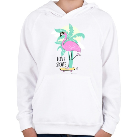 1 kép PRINTFASHION Gördeszkás flamingó - Gyerek kapucnis pulóver - Fehér