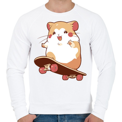 1 kép PRINTFASHION Gördeszkás hörcsög - Férfi pulóver - Fehér