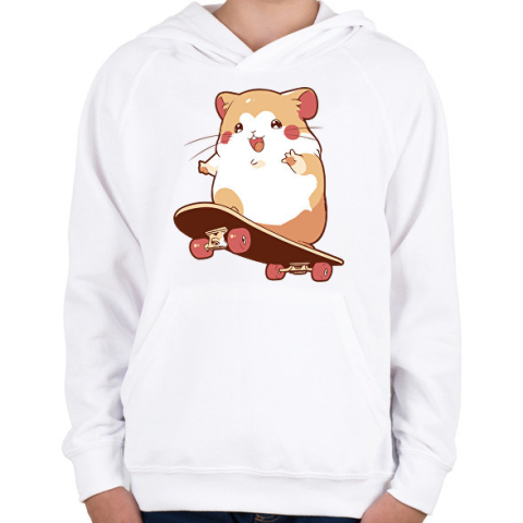 1 kép PRINTFASHION Gördeszkás hörcsög - Gyerek kapucnis pulóver - Fehér