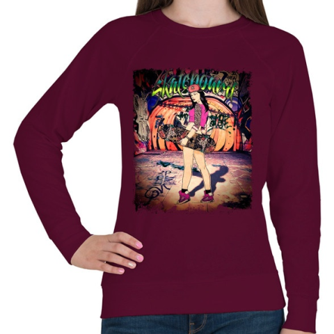 1 kép PRINTFASHION Gördeszkás lány - Női pulóver - Bordó