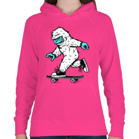 1 kép PRINTFASHION Gördeszkás Yeti - Női kapucnis pulóver - Fukszia