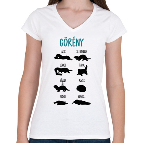 1 kép PRINTFASHION Görény - Női V-nyakú póló - Fehér