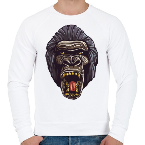 1 kép PRINTFASHION Gorilla arc - Férfi pulóver - Fehér
