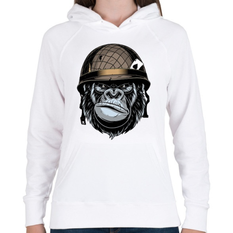 1 kép PRINTFASHION Gorilla Soldier - Női kapucnis pulóver - Fehér