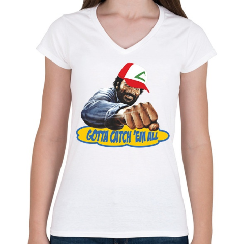 1 kép PRINTFASHION gotta catch 'em all - Női V-nyakú póló - Fehér