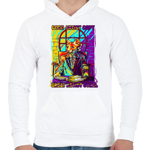 1 kép PRINTFASHION Graffiti - Macska - Férfi kapucnis pulóver - Fehér