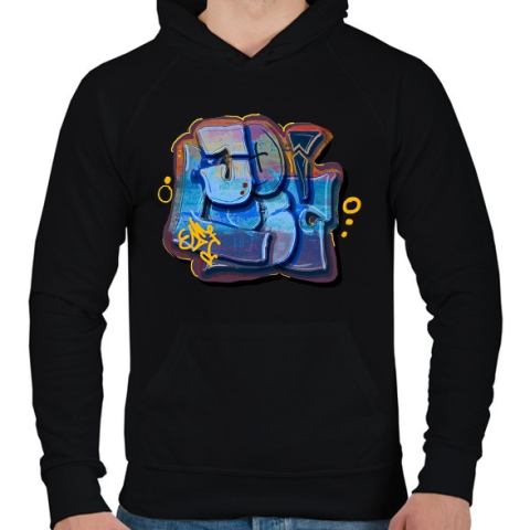 1 kép PRINTFASHION Graffity minta - Férfi kapucnis pulóver - Fekete