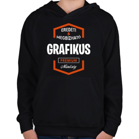 1 kép PRINTFASHION Grafikus prémium minőség - Gyerek kapucnis pulóver - Fekete