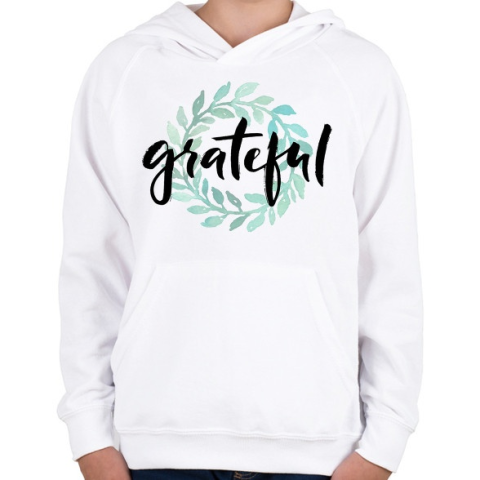 1 kép PRINTFASHION Grateful - Gyerek kapucnis pulóver - Fehér