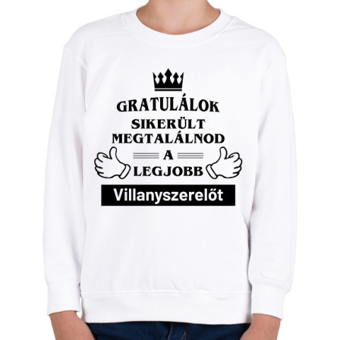 1 kép PRINTFASHION Gratulálok sikerült megtalálnod a legjobb villanyszerelőt - Gyerek pulóver - Fehér