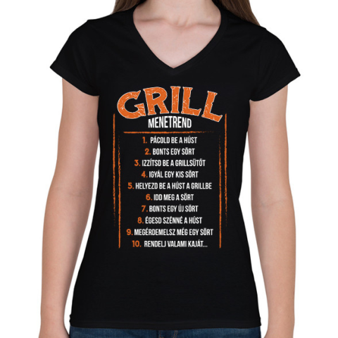 1 kép PRINTFASHION Grill menetrend - Női V-nyakú póló - Fekete