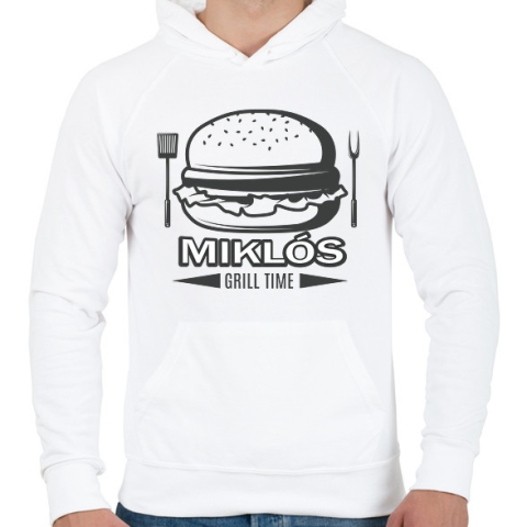 1 kép PRINTFASHION Grill time - Névvel - Férfi kapucnis pulóver - Fehér