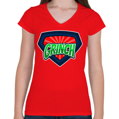1 kép PRINTFASHION GRINCH - Női V-nyakú póló - Piros