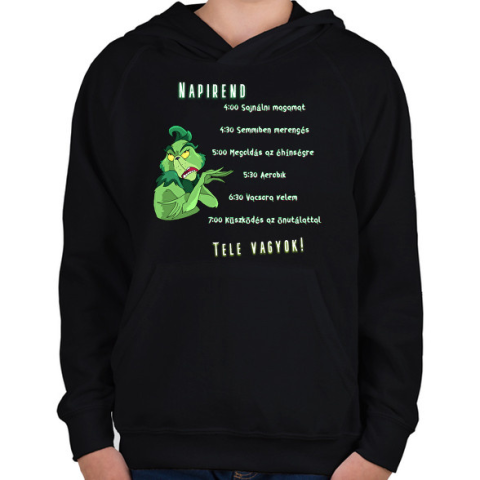 1 kép PRINTFASHION grincs napirendje - Gyerek kapucnis pulóver - Fekete