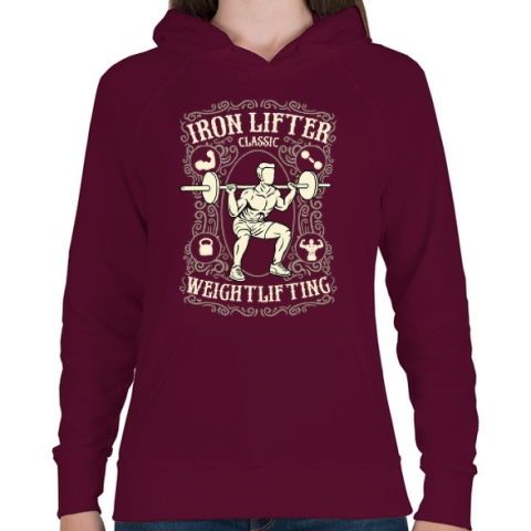 1 kép PRINTFASHION Guggolás vassal - Női kapucnis pulóver - Bordó
