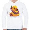 1 kép PRINTFASHION Gumikacsa hawaii virágfüzérrel - Férfi kapucnis pulóver - Fehér