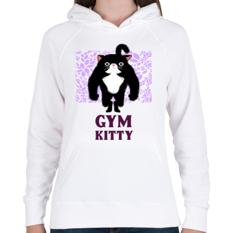 1 kép PRINTFASHION GYM KITTY - Női kapucnis pulóver - Fehér