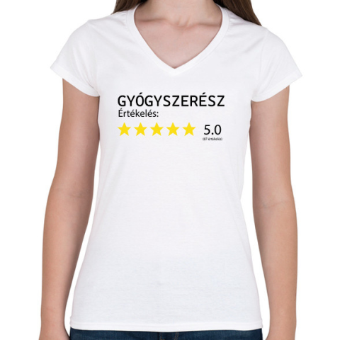 1 kép PRINTFASHION Gyógyszerész értékelés - Női V-nyakú póló - Fehér