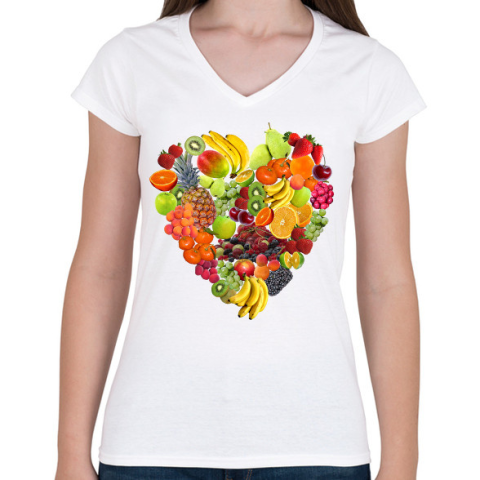 1 kép PRINTFASHION Gyümölcs-szív - Női V-nyakú póló - Fehér