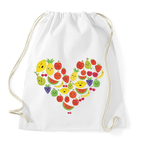 1 kép PRINTFASHION Gyümölcsös szív - Sportzsák, Tornazsák - Fehér