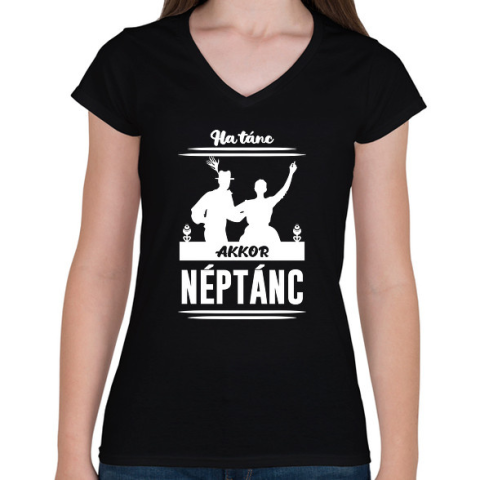 1 kép PRINTFASHION Ha tánc, akkor néptánc - Női V-nyakú póló - Fekete