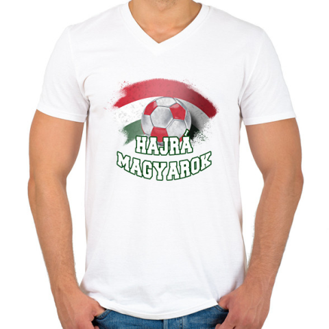 1 kép PRINTFASHION Hajrá magyarok - Férfi V-nyakú póló - Fehér