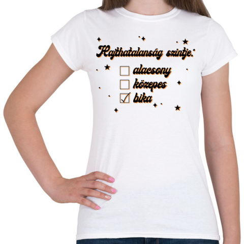1 kép PRINTFASHION Hajthatatlanság szintje - Női póló - Fehér