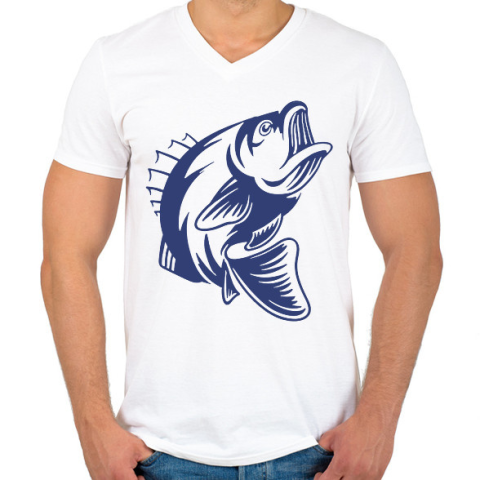 1 kép PRINTFASHION Hal/Fish - Férfi V-nyakú póló - Fehér
