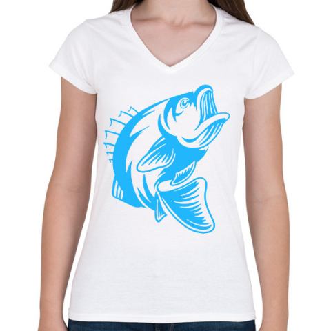 1 kép PRINTFASHION Hal/Fish - Női V-nyakú póló - Fehér