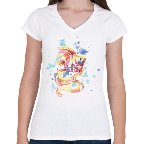 1 kép PRINTFASHION Hal vízfesték - Női V-nyakú póló - Fehér